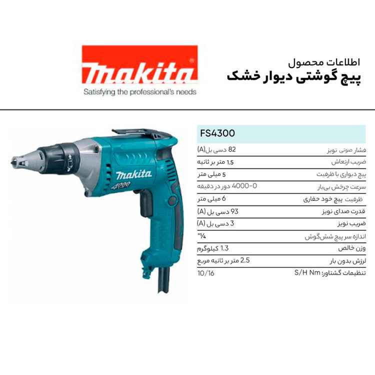 برای بستن یا باز کردن انواع پیچ با سری و سایزهای مختلف میتوانید از پیچگوشتی برقی مدلFS4300 استفاده کنید. این دستگاه باکیفیتی مطلوب و ابعاد و وزنی مناسب توسط شرکت ژاپنی تولیدشده است. قابلیتهای چندانی در این دستگاه دیده نمیشود؛ اما قدرت و امکان استفادهی طولانیمدت از این محصول، ویژگیای است که همهی پیچگوشتیهای برقی ندارند. این محصول دارای موتوری با توان 570 وات است. وزن این دستگاه 1300 گرم در نظر گرفتهشده و دستهای لاستیکی دارد. قابلیت کنترل سرعت (دیمر) و گردش به دو جهت برای این محصول در نظر گرفتهشده است. سری این پیچگوشتی برقی حالت مغناطیسی دارد که سرعت عمل کاربر را افزایش میدهد. شما برای کار کردن در شرایط مختلف میتوانید کلاهکی که سری پیچگوشتی را پوشانده است را از دستگاه جدا کنید. ضمنا برای تعویض سری پیچگوشتی هم باید ابتدا کلاهک دستگاه را بازکرده و سپس سری پیچگوشتی را عوض کنید. در قسمت انتهایی جلوی دسته، یک LED وجود دارد که همزمان با استفاده از دستگاه، روشن میشود؛ این LED برای کار در مکانهای کمنور و دید بهتر کاربر، تعبیهشده است. تنها ایرادی که در تهیهی این دستگاه وجود دارد، بستهبندی نهچندان مناسب آن است. «ماکیتا» (Makita) برگرفته از نام شخصی است که یک شرکت تولید ابزار را تاسیس کرد. مدلFS4300 هم بتولید شرکت ماکیتا است و با برند این شرکت در بازار وجود دارد. کیفیتی جالبتوجه در ساخت محصولات ماکیتا وجود دارد که باعث شده تا همواره مشتریان ثابتی در بازار داشته باشد.